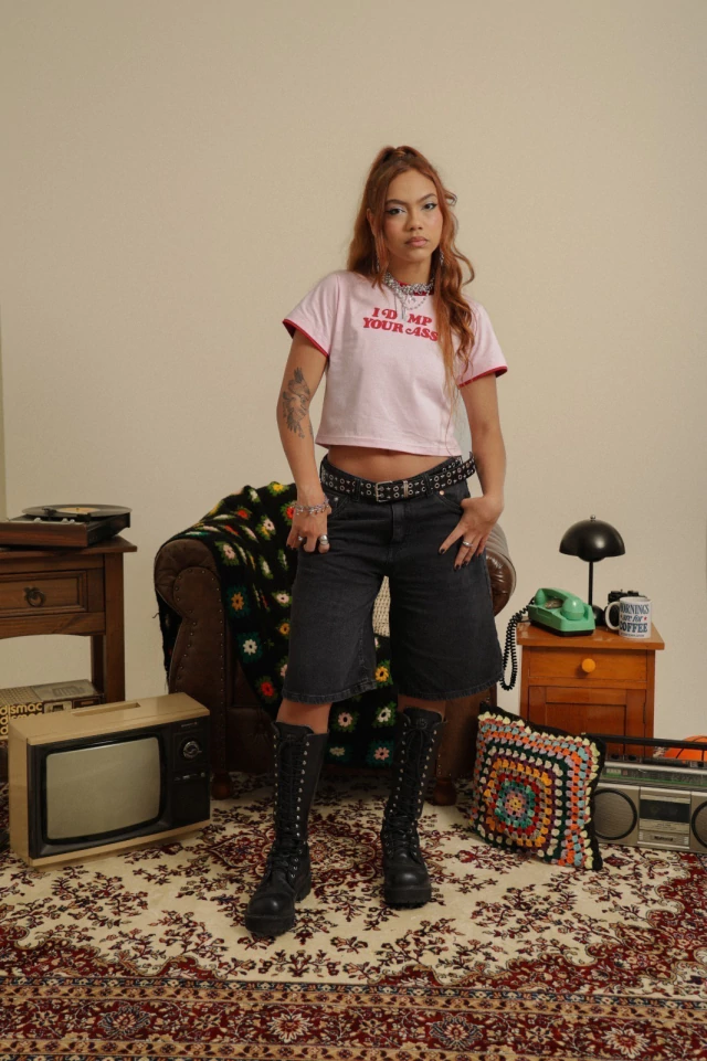 Com modelagem baby tee que remete ao visual teen dos anos 80, a peça combina nostalgia, atitude e um mood divertido que só quem conhece a cena entende.